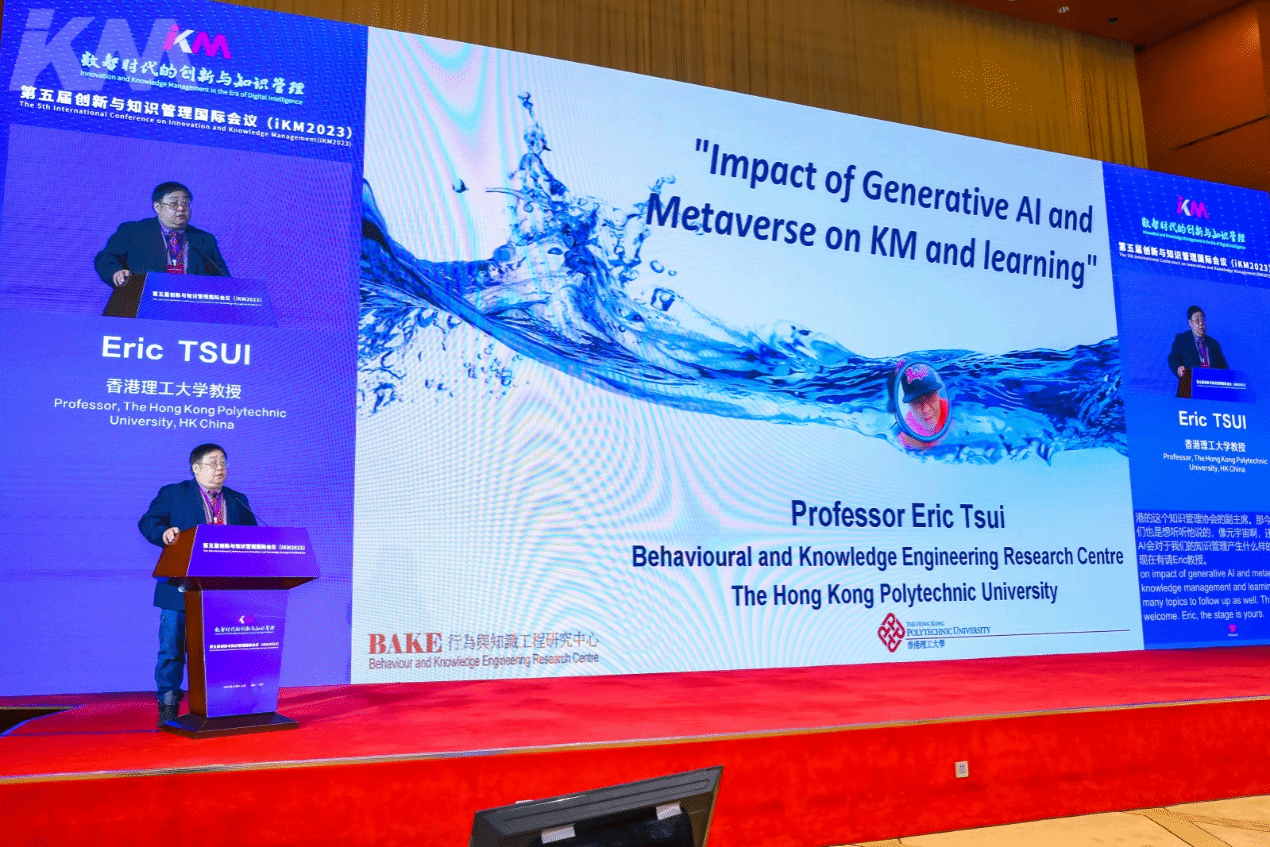 香港理工大学Eric TSUI教授以Impact of Generative AI and Metaverse on KM and learning为题,认为在如今快速发展和高度数字化的社会中,减少隐形知识泄露尤为重要。并从环境、范式、知识来源等方面探讨生成式人工智能和元宇宙对知识管理的影响。