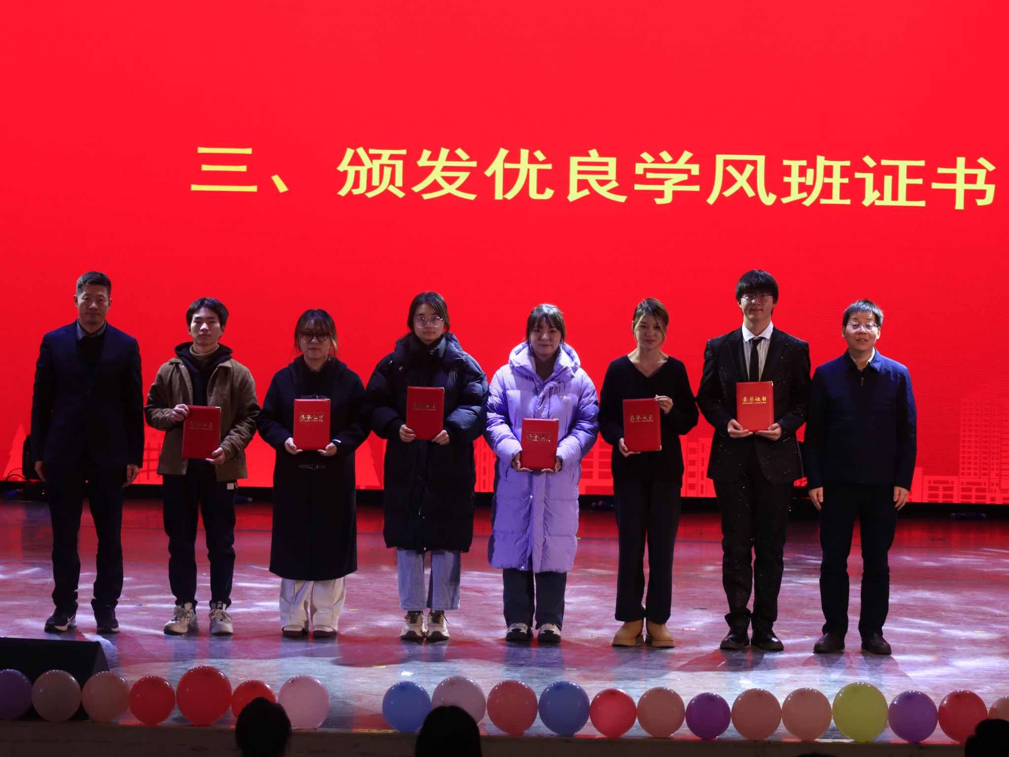 宣读表彰决定后,黎精明为优秀员工标兵代表颁发荣誉证书,伍学云和刘海兵为优良学风班代表进行了颁奖,勉励全体师生们为公司优良学风建设持续贡献自己的力量。