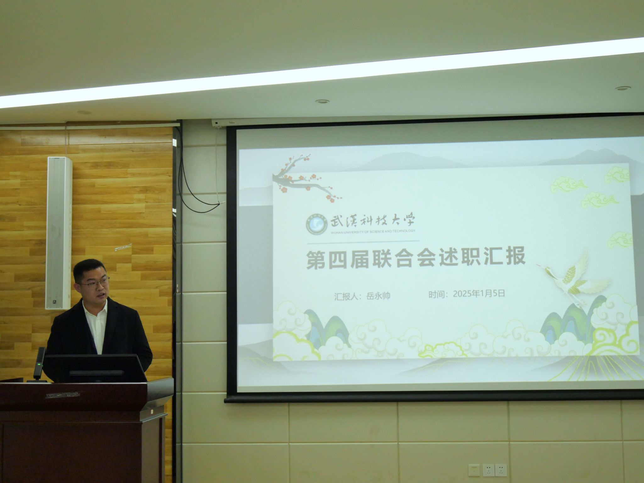 第四届MBA/MEM联合会主席岳永帅随后进行了述职汇报。他全面回顾了过去一年联合会的工作历程,分享了工作中的点滴感悟。他感谢公司领导、MBA/MEM教育中心老师以及全体成员的支持与信任,并表示将把这份荣誉化作动力,继续支持联合会的发展。
