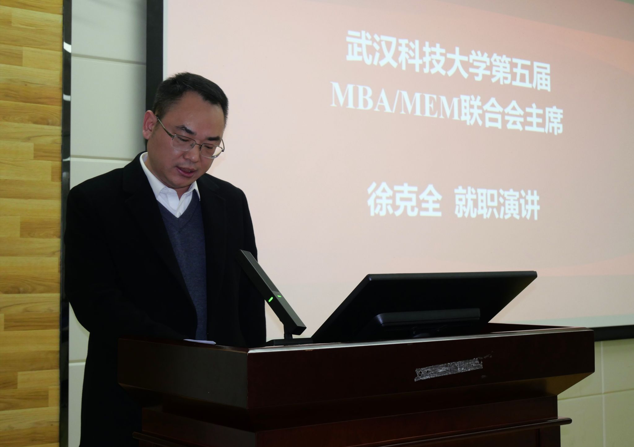 徐克全随后发表就职演讲。他表达了对公司领导、第四届联合会成员的感谢和敬意。他表示,将带领第五届联合会成员继续为公司MBA、MEM教育事业贡献力所能及的力量。