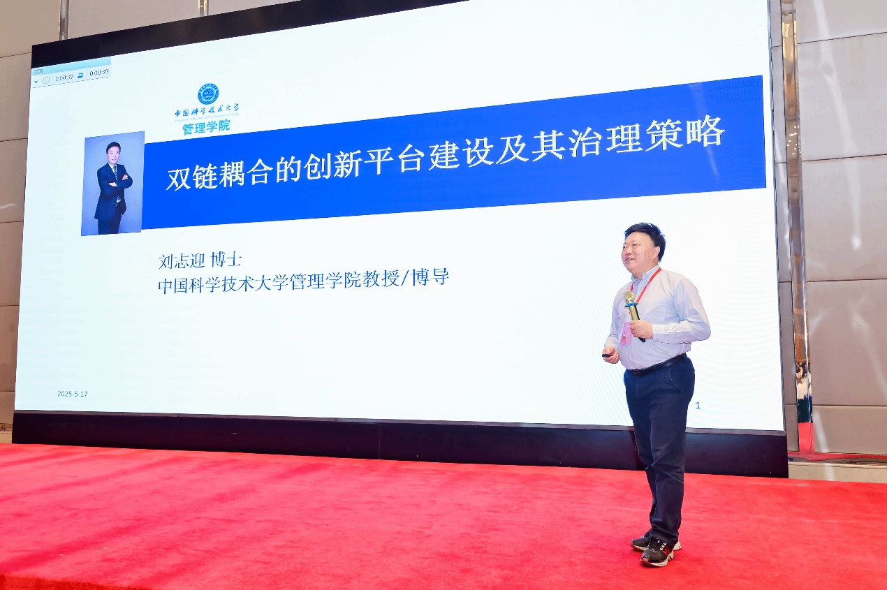 中国科学技术大学刘志迎教授作题为“双链耦合的创新平台建设及其治理策略”主旨报告。刘志迎提出以平台作为依托,构建以产业链部署创新链和创新链布局产业链的双链耦合机制,实现科技创新与产业升级的良性互动,助力国家战略需求与经济高质量发展。