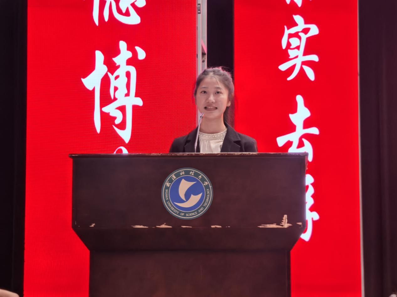 研究生新生代表余子洁分享了从研支团志愿者到研究生的身份转变感悟,从三个维度规划研究生生活:以“青春之我”应答“时代之问”、以“厚德之我”夯实“立身之基”、以“实干之我”投身“伟大实践”。