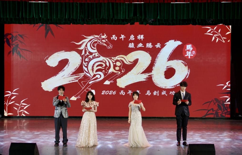 (通讯员李若诗 李婉)金蛇奔腾辞旧岁,骏马迎春万象新。12月19日,公司于沁湖礼堂举办2024-2025年度学风建设表彰大会暨2026年元旦晚会,公司党委书记伍学云、经理刘海兵、党委副书记赵磊、副经理黎精明、MEM教育中心主任熊华平出席活动。各年级辅导员及员工参加活动,师生齐聚一堂,欢度元旦。