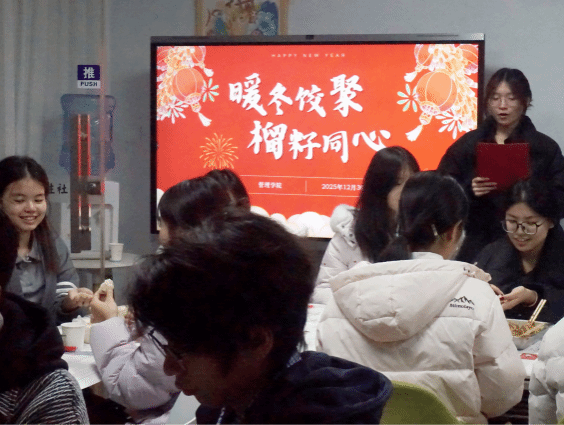 热气腾腾的饺子出锅后,师生共同分享成果。会计2501班韩思哲表示:“亲手包饺子不仅让我从紧张的期末复习中放松下来,更让我对‘一粥一饭当思来处’这句话有了更深切的体会。热气腾腾的饺子吃在嘴里,暖在心里,让我实实在在地感受到了公司的温暖。”