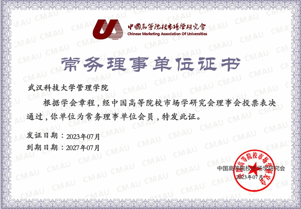 近日,经中国高等院校市场学研究会(Chinese Marketing Association of Universities),英文缩写(CMAU)理事会决议,公司正式成为常务理事单位会员,陈国平教授当选为学会第十二届常务理事。