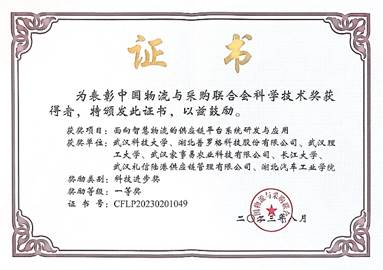 公司研究成果获中国物流与采购联合会科技进步一等奖