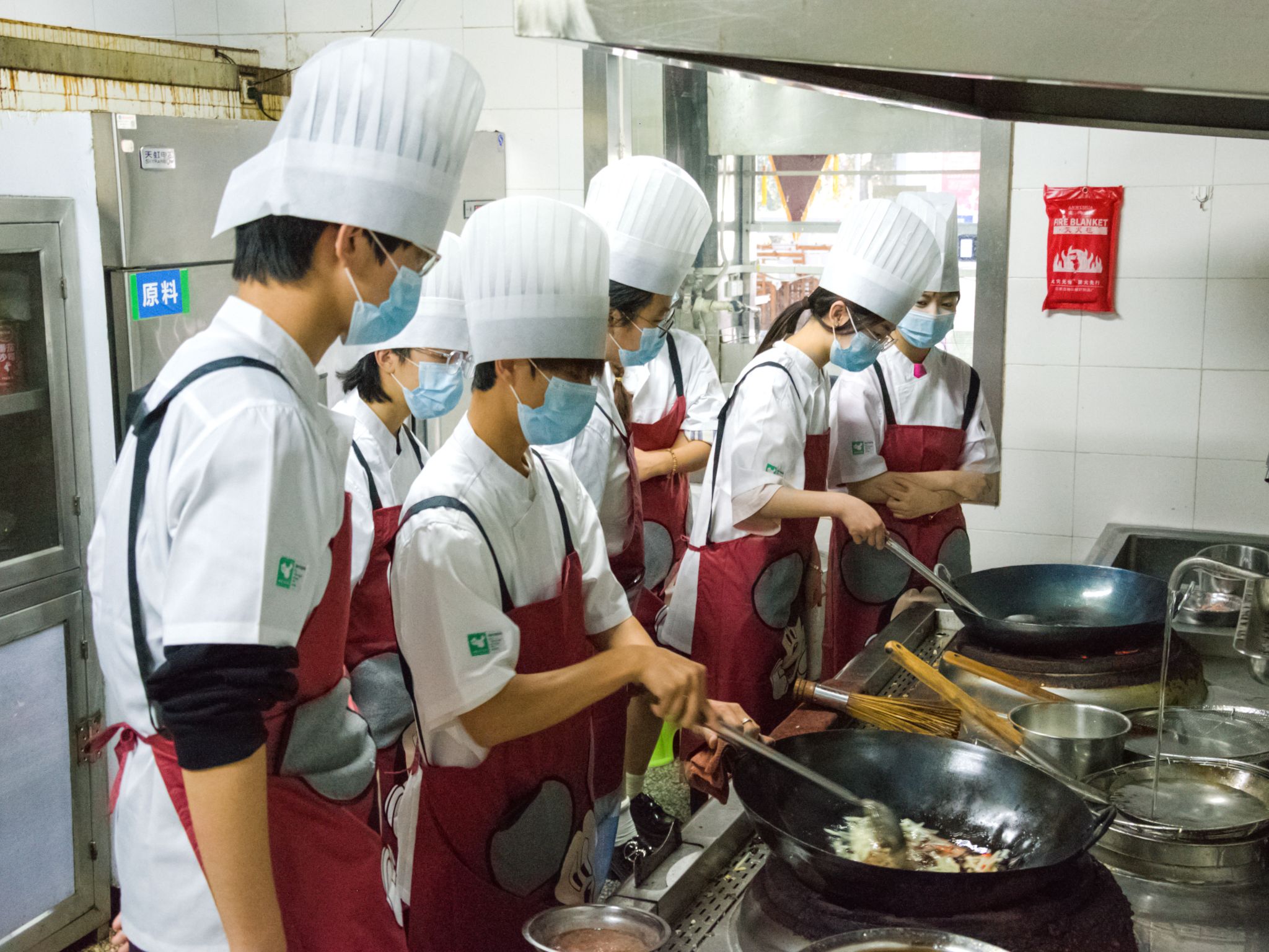 活动邀请了公司餐饮服务中心的工作人员为员工教授鱼香肉丝菜品的制作方法。刚进食堂后厨,员工们便被分发了专业的厨师帽和厨师服。穿戴好后,厨师为员工们现场示范原材料的洗净、切制、菜品翻炒、调味等流程。“肉丝裹上鸡蛋能保持肉质的软嫩,接下来需要热锅冷油,热油会使肉质变柴。变色时就要迅速盛出。”员工们分成两组,在厨师的指导下把握火候,下料翻炒。在菜品炒制环节,很多员工第一次拿起锅铲,体验自主完成一份菜品制作的过程。