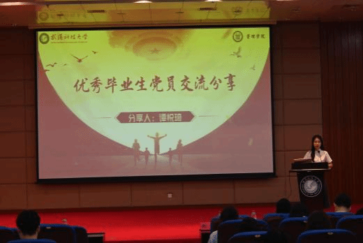 研究生第六支部李玟卓、本科生第三支部谭悦琦两位同学依次作为优秀毕业生党员代表发言,分享了自己在党旗下成长的感悟与思考。她们鼓励在座同学以崇高的信仰和坚定的信念为精神坐标,以积极的行动践行党的宗旨,始终以党员的标准严格要求自己。