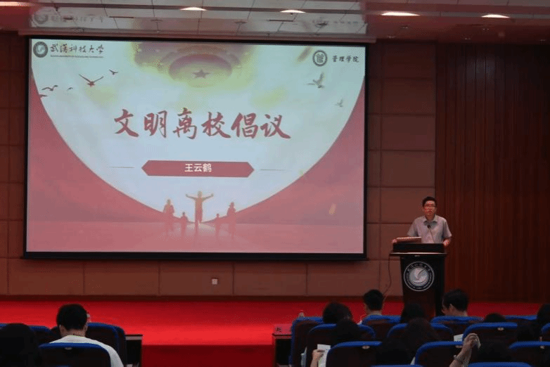 毕业是人生的重要转折点,文明离校不仅体现着个人修养,更彰显着共产党员的先锋模范作用。王云鹤就文明离校发起倡议,在座毕业生党员认真聆听,并在文明离校承诺上郑重签名,以初心印记践行党员的责任与担当。