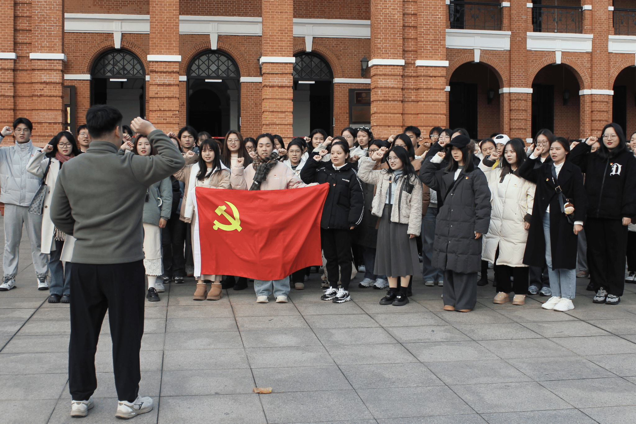 参观结束后,全体党员在纪念馆主楼前的广场上一起重温入党誓词。best365英国体育在线研究生第二党支部组织委员刘晨辉作为领誓人,带领大家在党旗下庄严宣誓。“我志愿加入中国共产党,拥护党的纲领,遵守党的章程…”铿锵有力的誓言回荡在纪念馆内外,彰显了党员们坚定的理想信念和向上的精神风貌。
