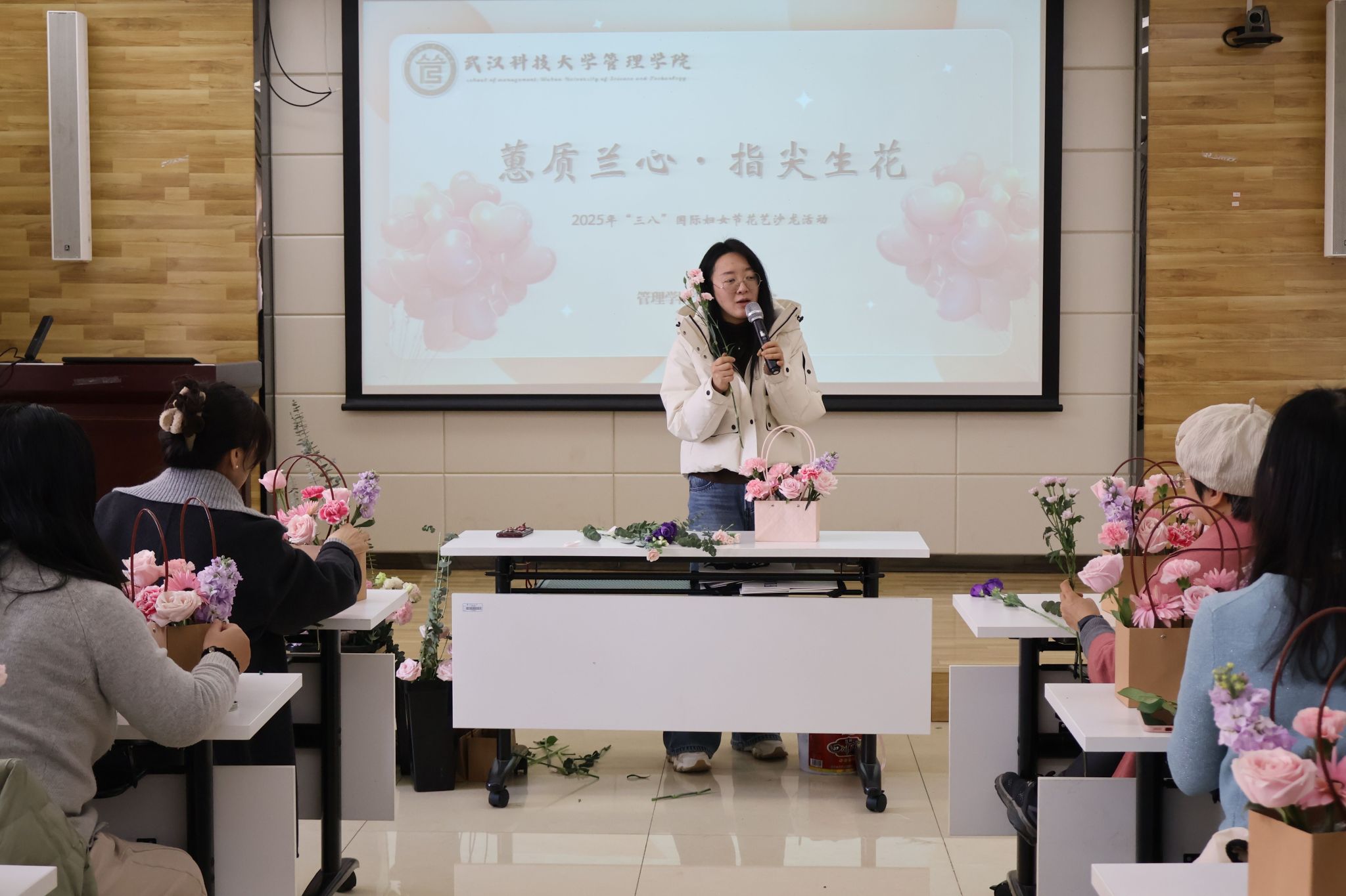 武科大网讯(通讯员陈志勃)为迎接即将到来的2025年“三八”国际妇女节,3月6日中午,公司工会、妇委会于教80307联合举办了花艺沙龙活动,旨在向全体女性教育工作者致以崇高敬意,感谢她们以柔肩担重任,为公司发展和员工成长贡献的“她力量”。此次活动由公司副经理杜瑞瑞主持,公司女教职工受邀参加。